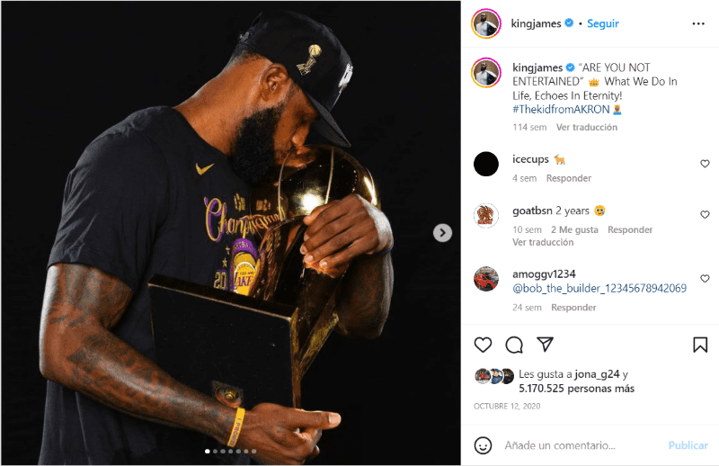 In comparison, LeBron James' post with him holding the NBA Championship Trophy has 5 Million likes, and his most liked post is when he wrote a message about Kobe Bryant's tragic passing with 16 Million.
