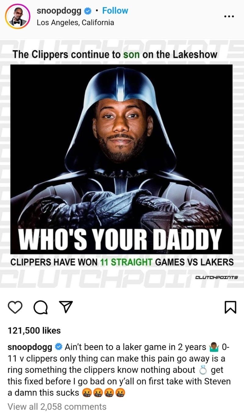 Snoop is getting backlash not because of his words but because a few weeks earlier, fans remember that the hip-hop mogul was cheering for the Clippers, the city rival of the purple and gold.