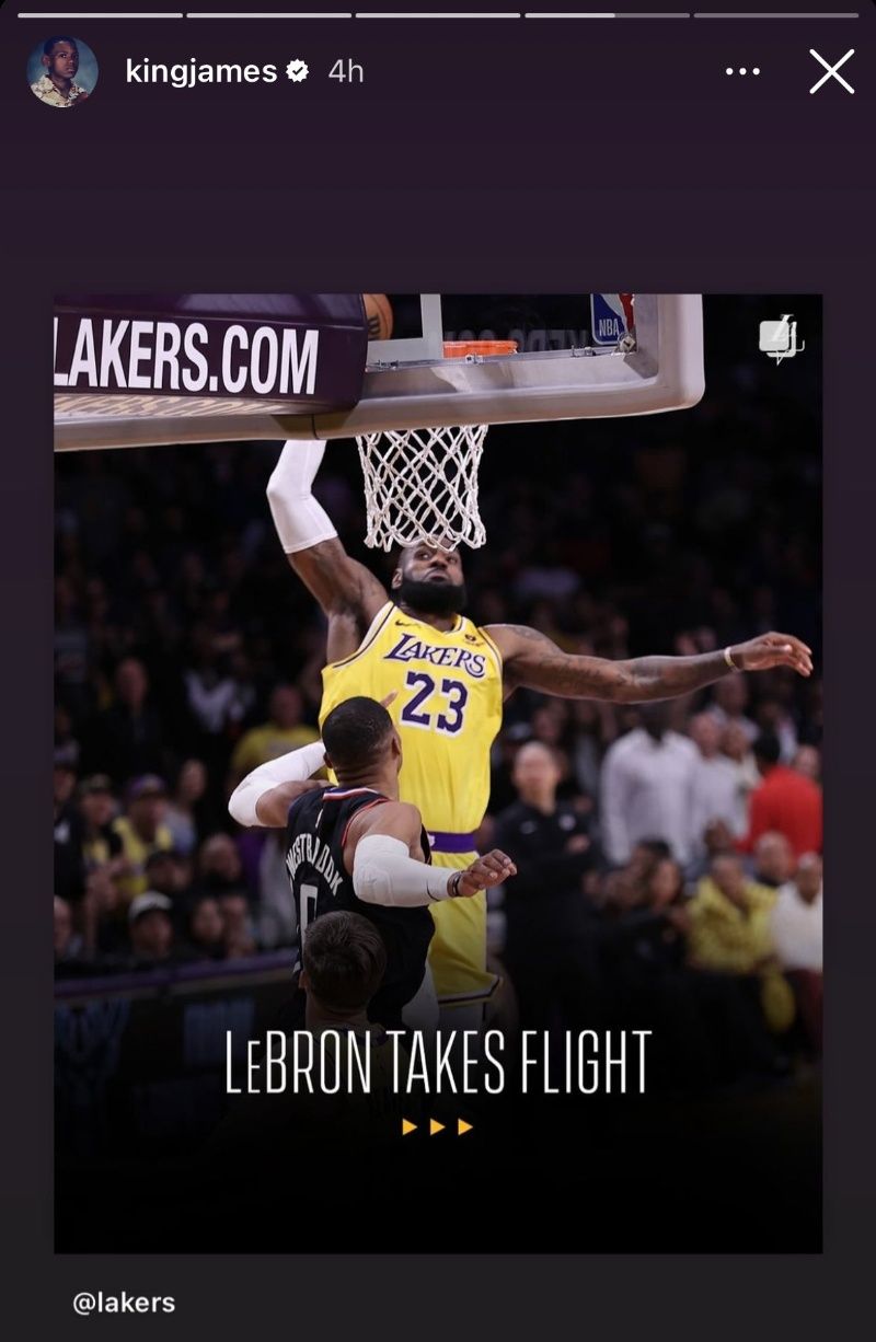It was made evident during the contest that Russell Westbrook doesn't want to have anything to do with the purple and gold, even LeBron James had his distance on him, but during the game, LeBron made a dunk that Westbrook failed to defend, and it seems that after the win, LeBron is trolling as he posted the picture on his IG story showing the dunk on Russ.