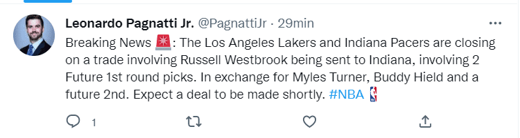 Even when the latest rumors had Russell Westbrook staying in Los Angeles, ESPN reporter Leonardo Pagnatti Jr. has announced that the Lakers and Pacers will be closing the long-rumored trade.